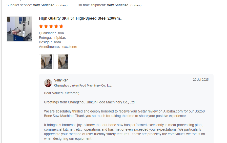 Feature highlights:The Electric Meat Cutting Bandsaw BS250 is made of stainless steel with a powerful copper motor, offering durability and efficiency for meat processing.