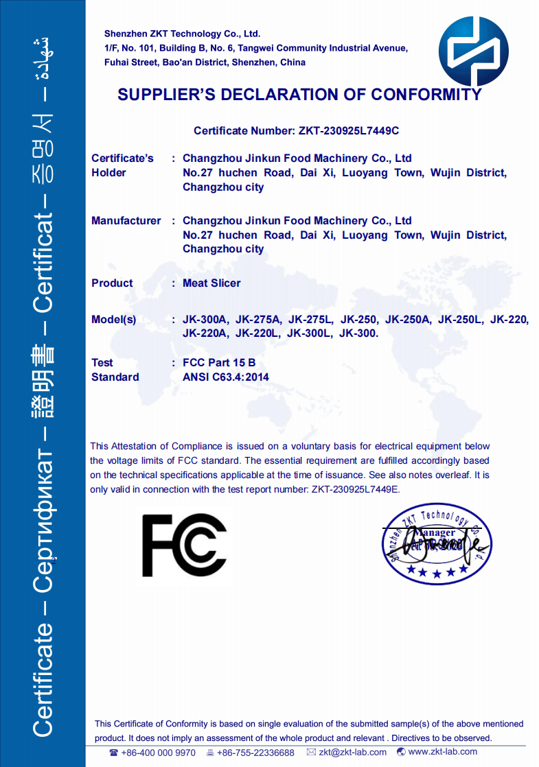 As a professional of meat fachinery, all of our products are with UL, CE, FCC, ISO9001, UKCA, FDA certificate. For the resons about why choose us:
