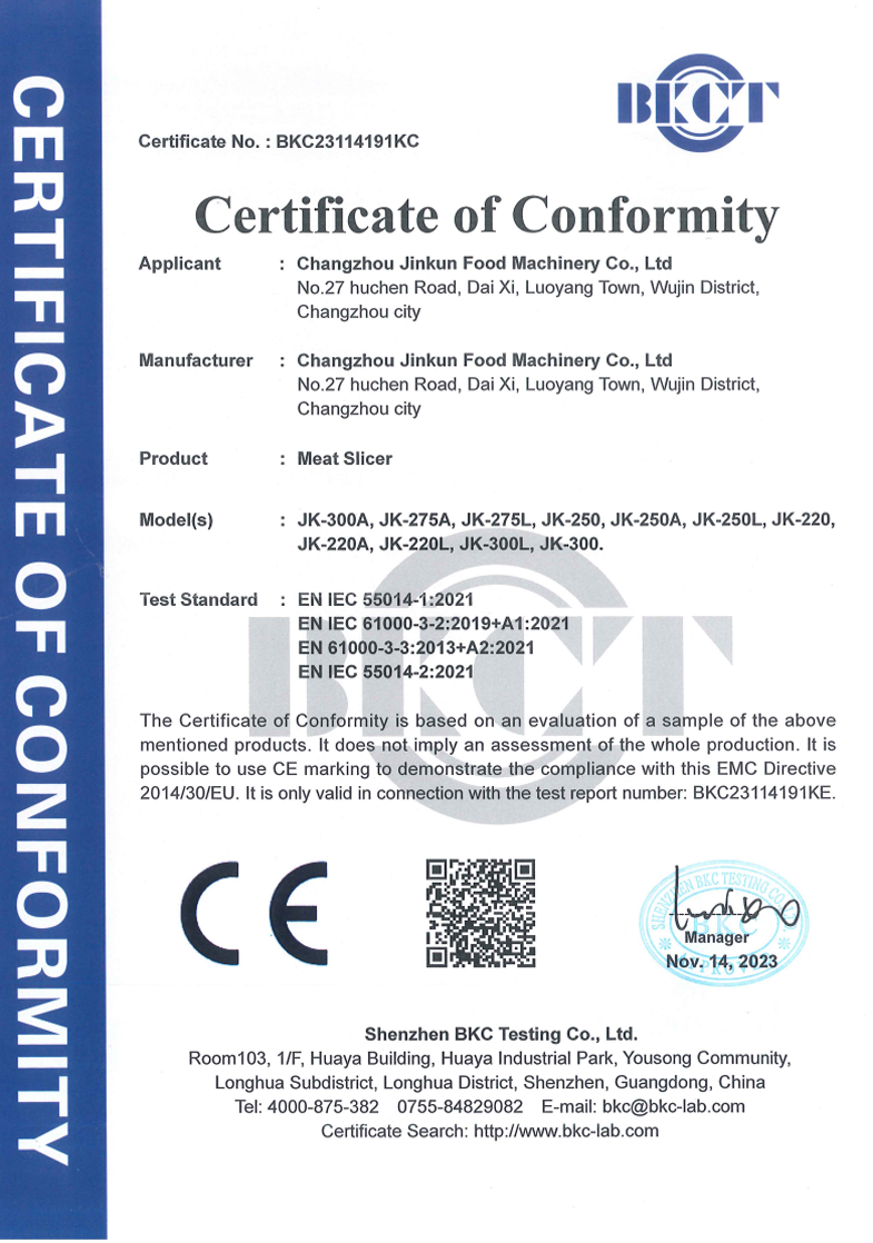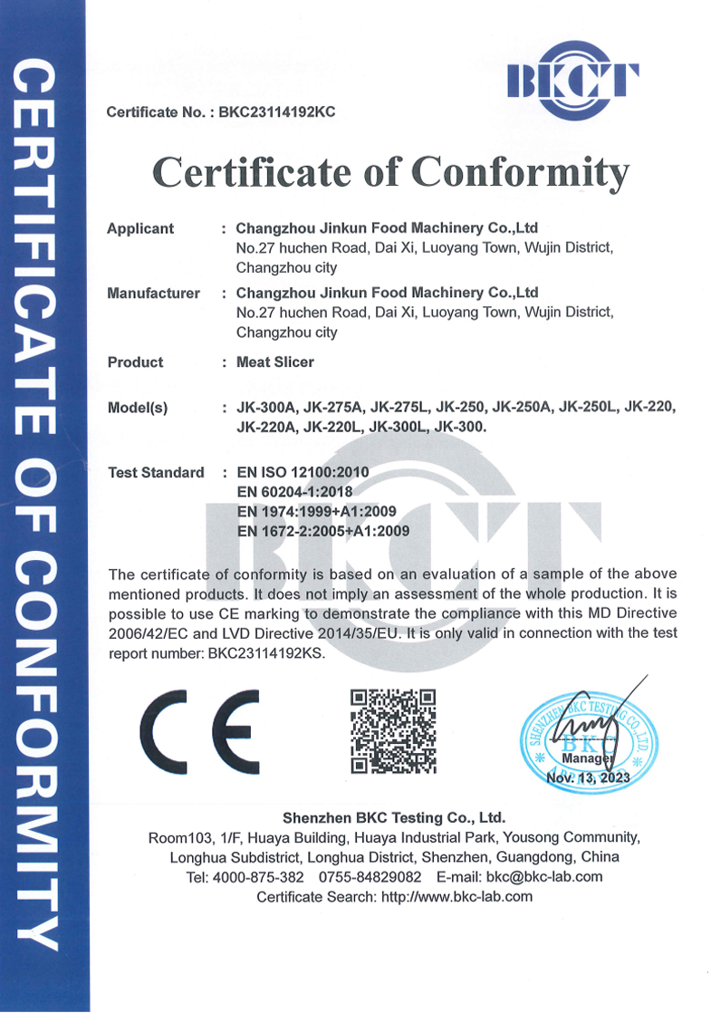 Established in 2012, Changzhou Jinkun Food Machinery Co., Ltd is a professional manufacturer, we concentrate on meat machinery, including meat slicer, meat grinder, hamburger press, bone saw, sausage stuffer.