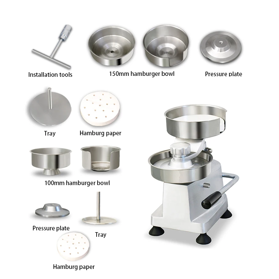 Easy to Use: The manual operation allows full control over the patty-making process, ensuring precision in portion sizes and patty thickness.