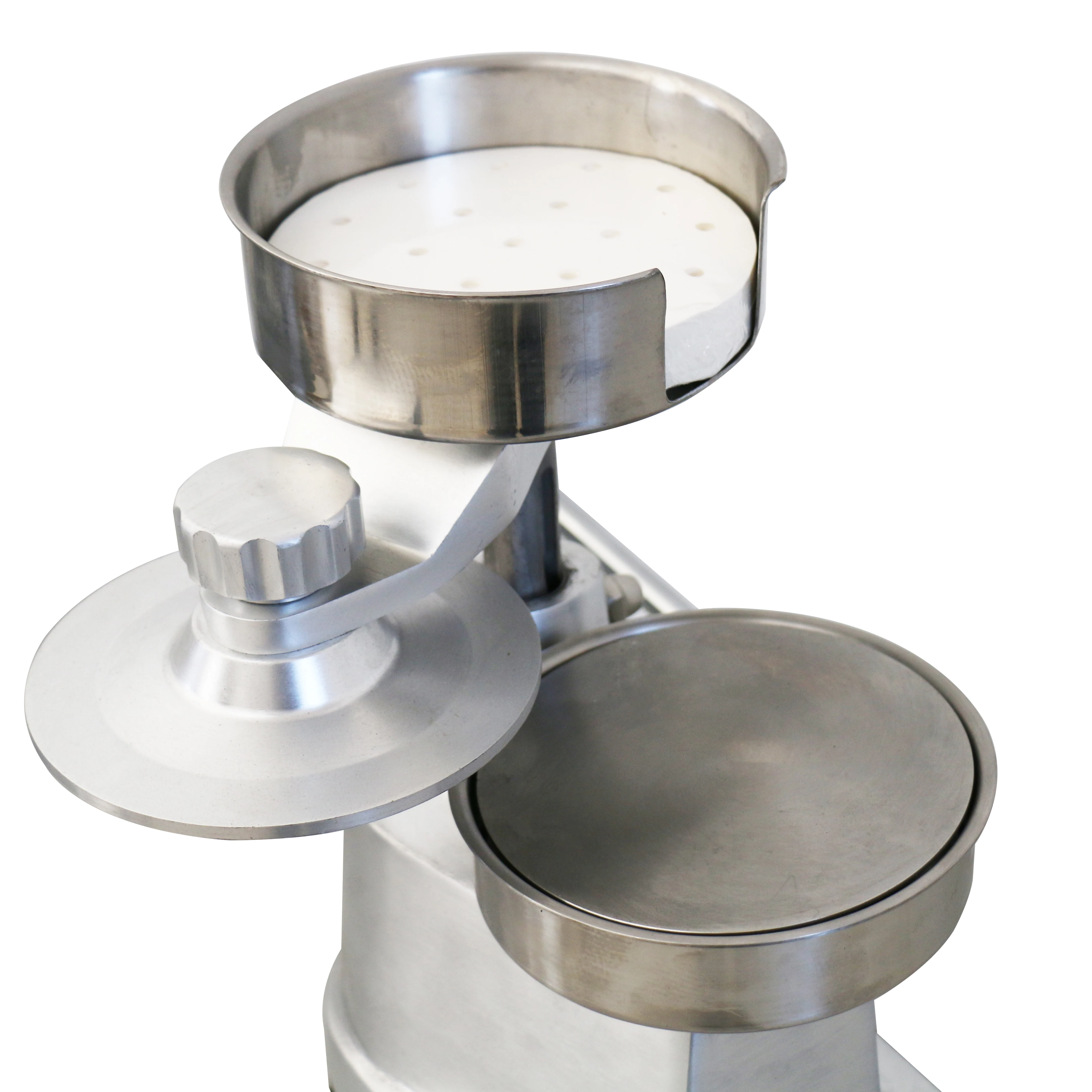 The JKH-101315 Patty Press is made from 304 stainless steel for the bowl and tray, ensuring resistance to corrosion and providing long-lasting durability even in high-demand environments. The aluminum pressure plate is lightweight yet strong, making pressing easy and reducing the strain on the user. The combination of these high-quality materials makes the JKH-101315 suitable for heavy use in commercial kitchens or catering operations while ensuring that the product remains easy to clean and maintain.