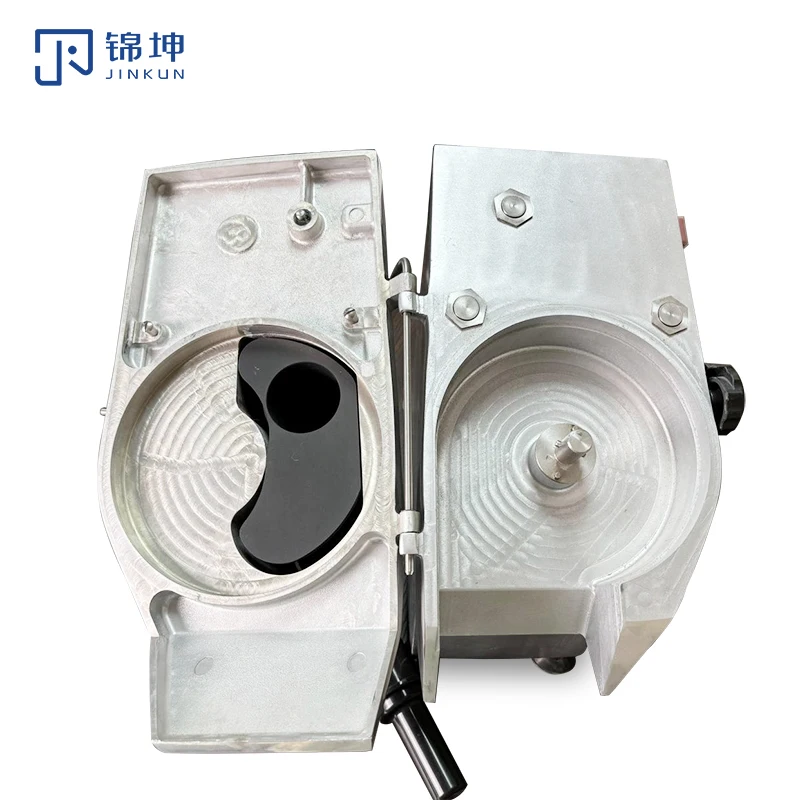 The patty press bowl and cutting components are made of food-grade stainless steel, including an SS304 rotating shaft. It ensures durability, hygiene, and long-term corrosion resistance. The machine includes a safe-access protection design to prevent accidental contact with blades during operation.