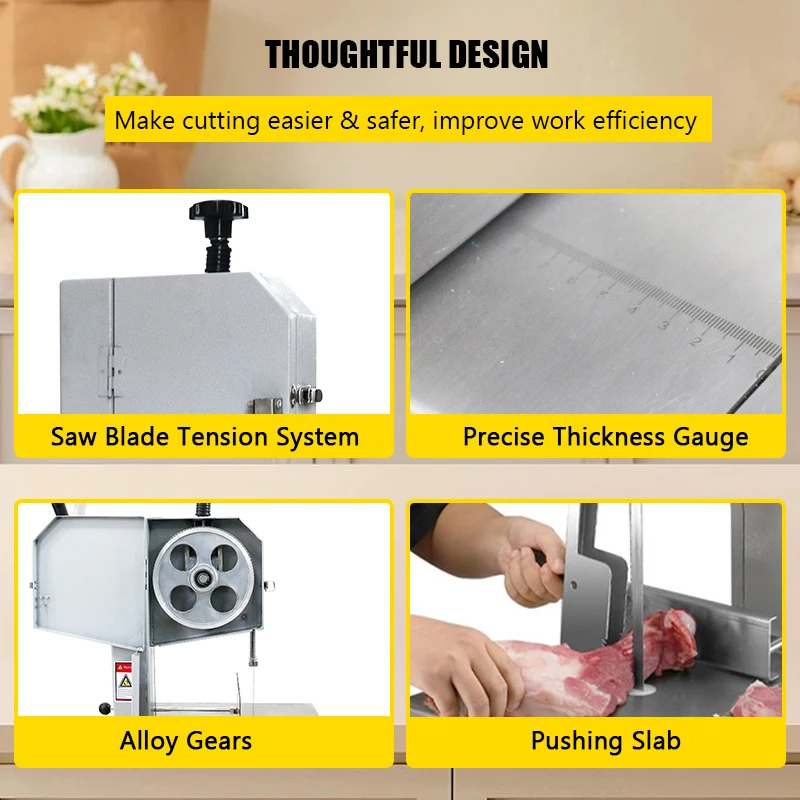 For home kitchens that process large cuts of meat or prepare specialty meals, the JKB-210T offers both affordability and reliability. Whether you're cutting poultry or beef for family meals, this machine provides the power and precision needed for high-quality cuts.