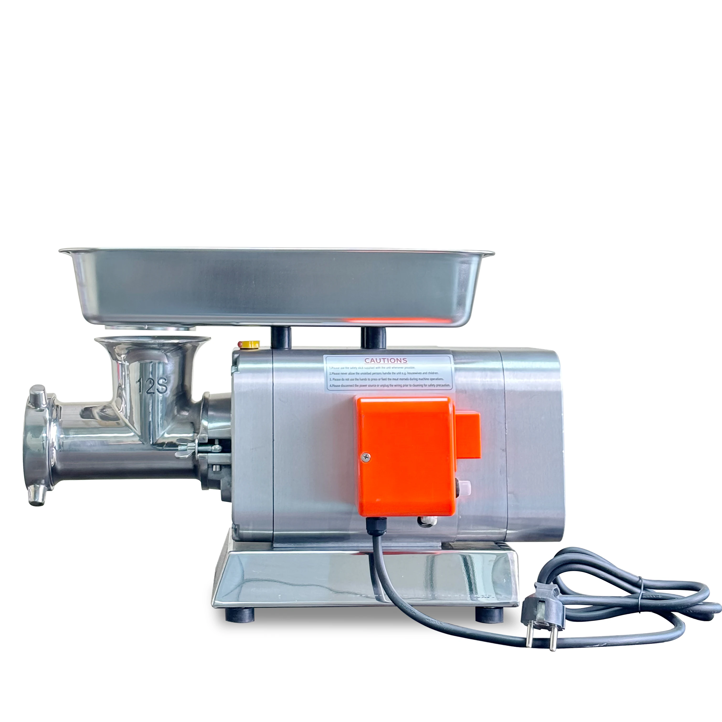 Despite its powerful motor and high output capacity, the RY-12 boasts a compact design that saves space without sacrificing power. Measuring 510×260×330 mm, it’s easy to fit into commercial kitchens, supermarkets, or even home kitchens. The stainless steel construction ensures the grinder is not only durable and rust-resistant but also easy to clean, making it suitable for environments where hygiene is a top priority.