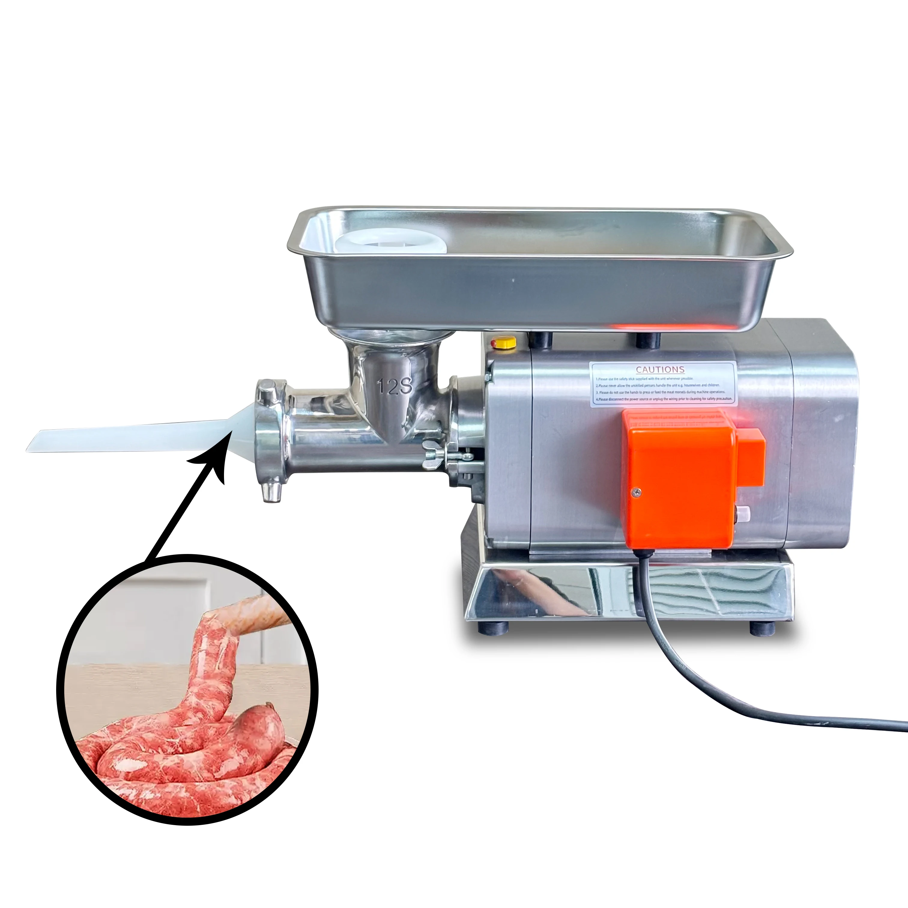 The RY-12 is equipped with an 1100W motor, offering a speed of 187 r/min. This allows the grinder to process up to 120-150 kg of meat per hour, making it perfect for medium-scale operations. Whether you're grinding fresh meat for burgers, preparing meat foam for sausages, or making minced garlic, the RY-12 handles it all efficiently. Its high-output design reduces downtime and increases overall productivity, ensuring your operations run smoothly without interruptions.