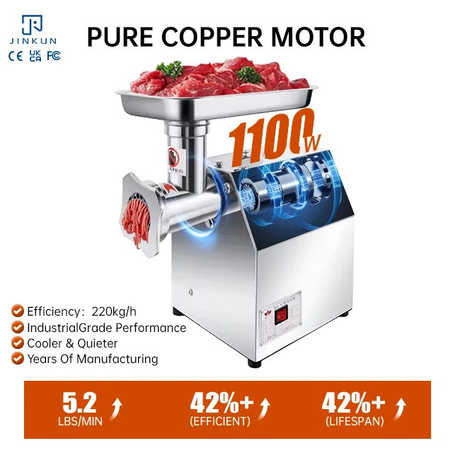 At the core of the TK-22L 220kg/h Multi-function Portable Meat Mincer Machine Industrial Meat Grinder & Meat Mincer lies a robust 1100W high-performance motor, capable of processing up to 220 kilograms of meat per hour. This superior grinding capacity allows your operation to handle large volumes of meat quickly and efficiently—making it a reliable solution for commercial kitchens and industrial environments.