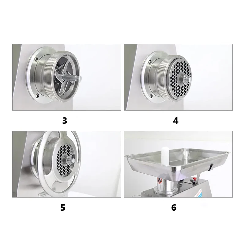 The YK-32W comes equipped with a forward and reverse switch, which is essential for clearing blockages or dealing with difficult grinding situations. The ability to reverse the motor helps the operator quickly return to previous operations without damaging the machine, ensuring smooth and efficient grinding without interruptions. This feature is particularly valuable when processing different types of meat or dealing with tough cuts.